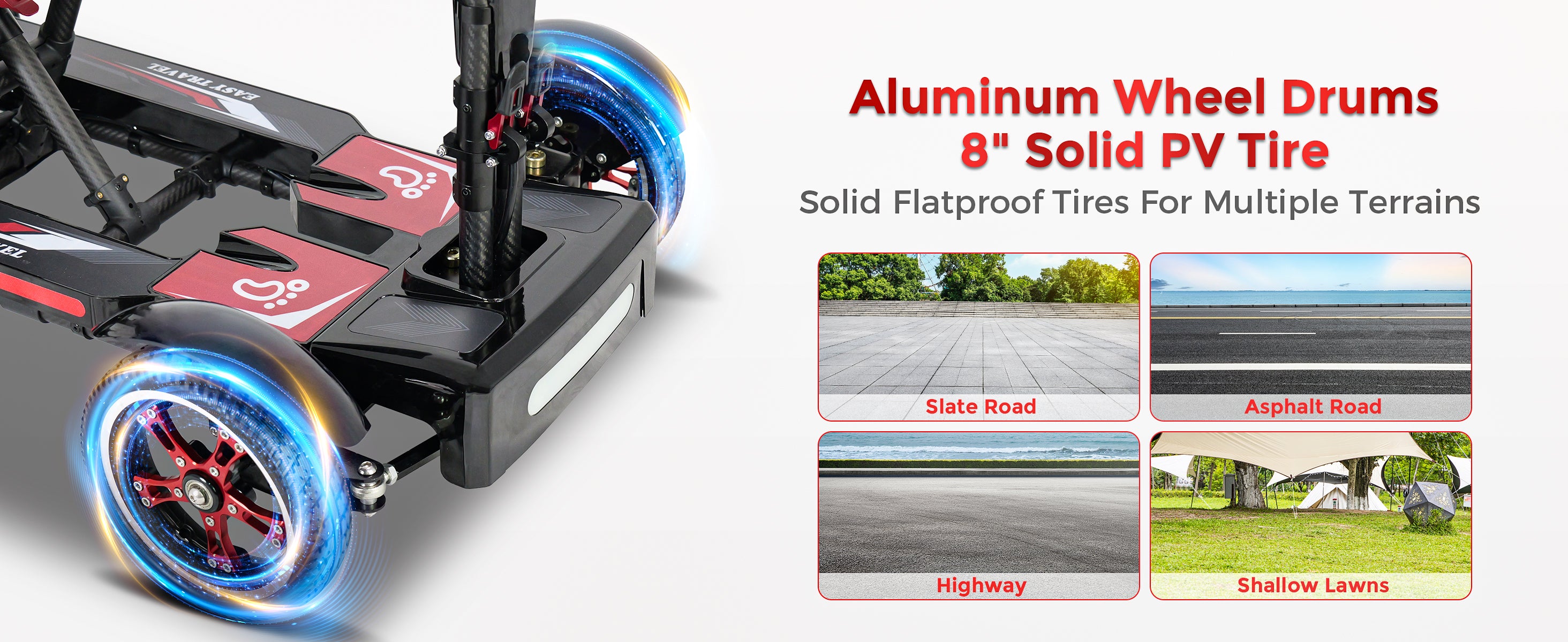 I am so glad I purchased this scooter. For me, the weight of this carbon fiber mobility scooter is perfect and I was able to lift it easily and also fit it in the trunk of my car. Just because this scooter is lightweight doesn't mean it's fragile. In fact, it is sturdier than I expected. I weigh 200 pounds, but the ride felt very smooth, with no wobbles or noises in the frame, and I felt very confident going over small bumps and checking manhole covers. The carbon fiber is really tough, absorbing vibrations (more comfortably than hard metal) while ensuring overall stiffness, and the ride feels very solid. Lightweight thanks to careful design. The seat is very comfortable, very satisfied.