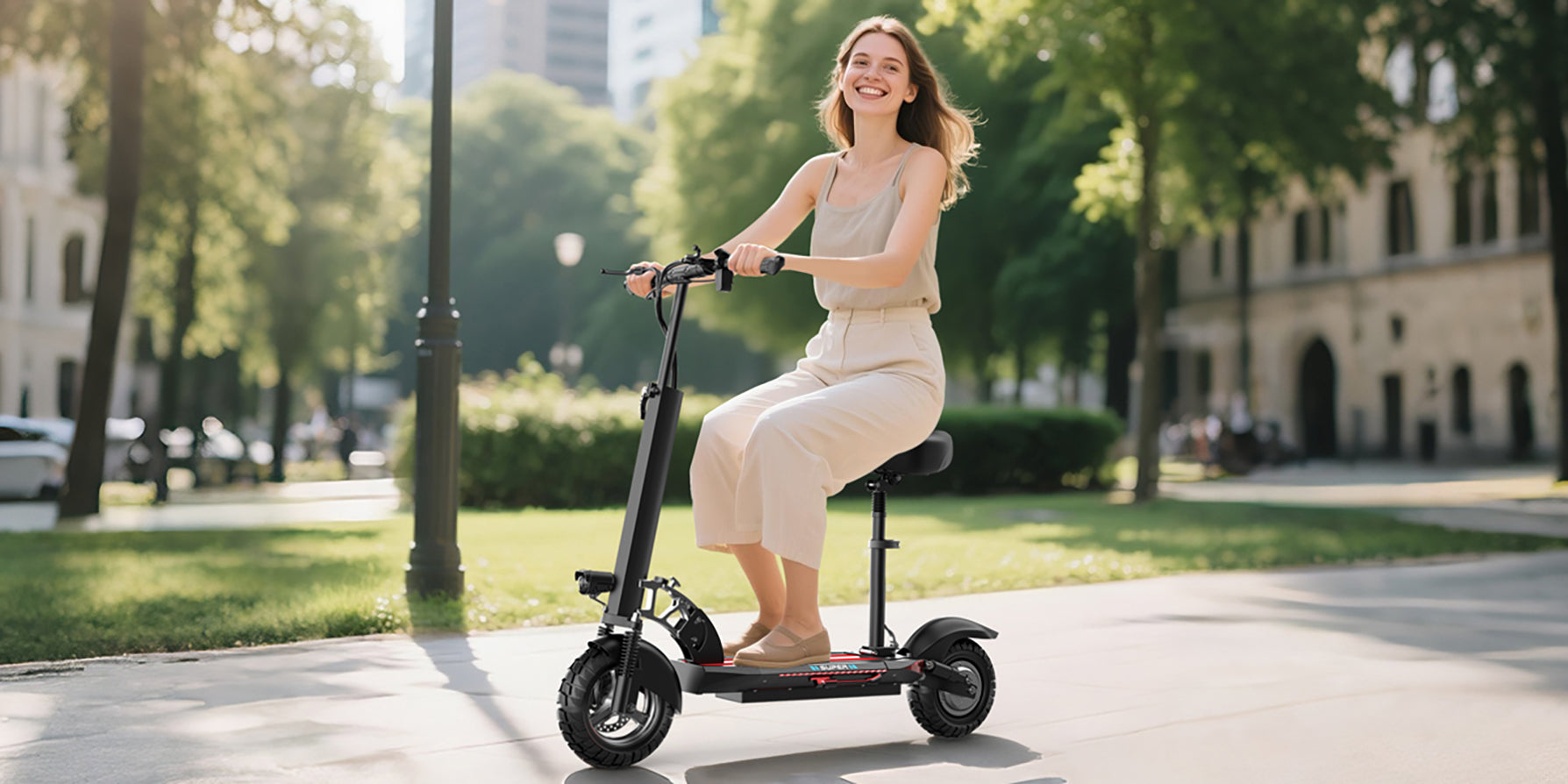 A female student rides the scooter around campus, enjoying agile handling and lightweight comfort for faster and more efficient daily commuting.