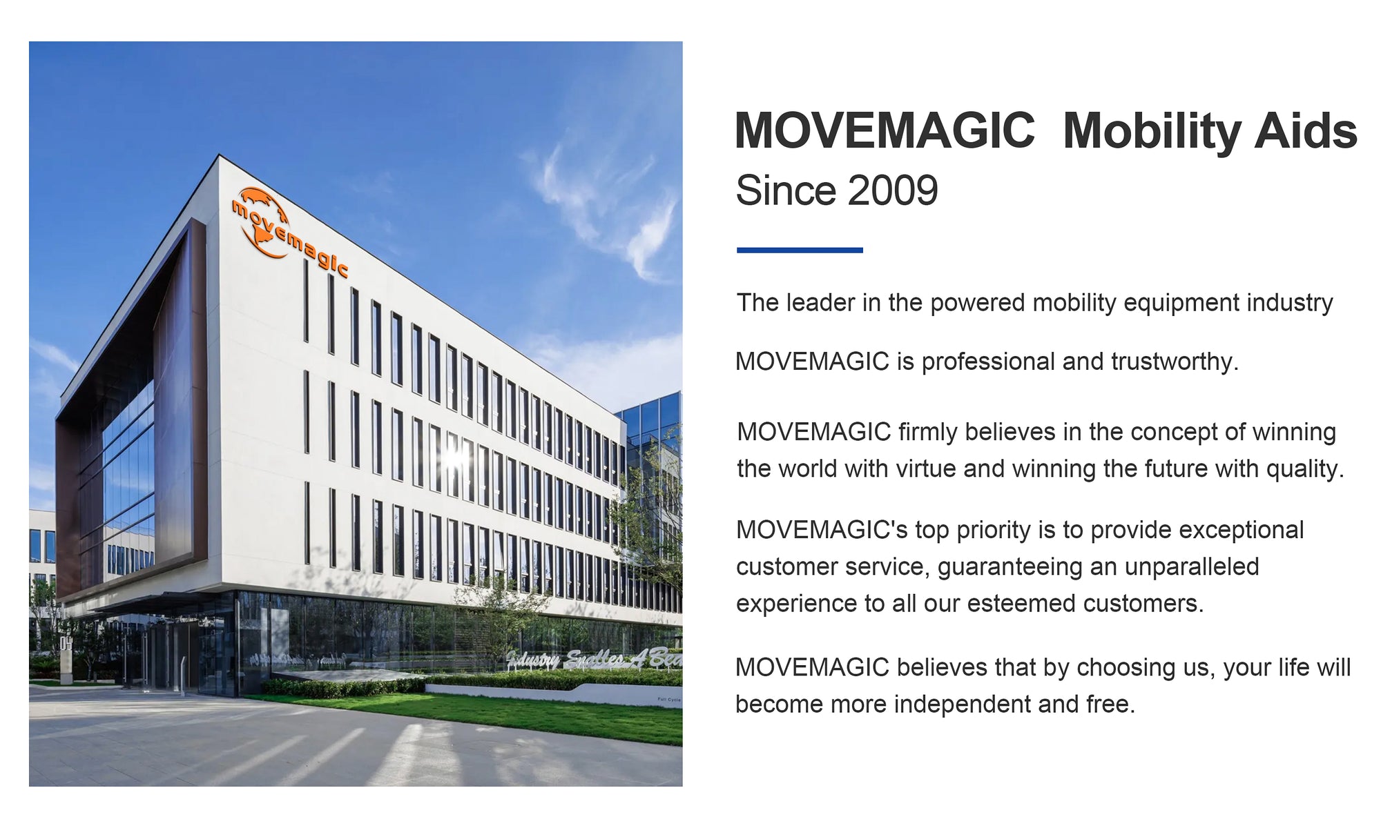 Since 2009, MOVEMAGIC has been a leader in powered mobility equipment, committed to “winning the world with virtue and the future with quality,” delivering exceptional customer service and helping you enjoy a more independent and free lifestyle.