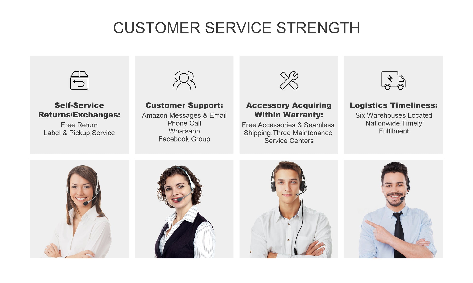 We provide self-service, customer support, accessory acquisition, timely logistics, returns/exchanges, and in-warranty service, ensuring fast response through multiple channels (phone, messages, WhatsApp, etc.) for a smooth and worry-free experience.