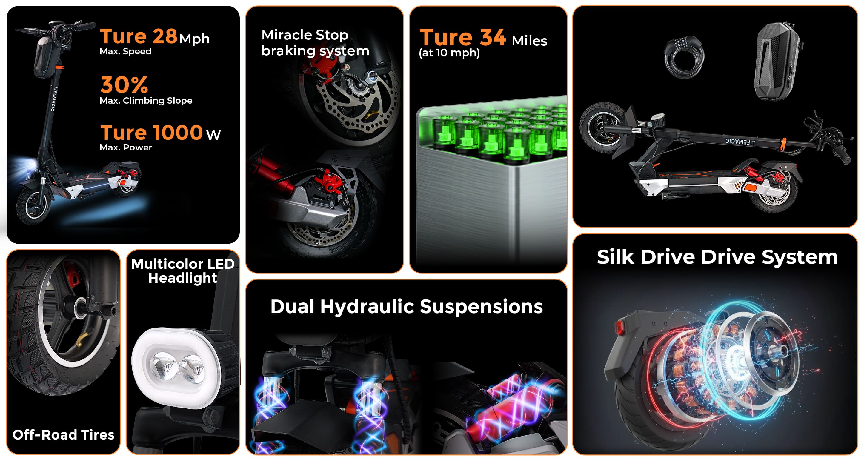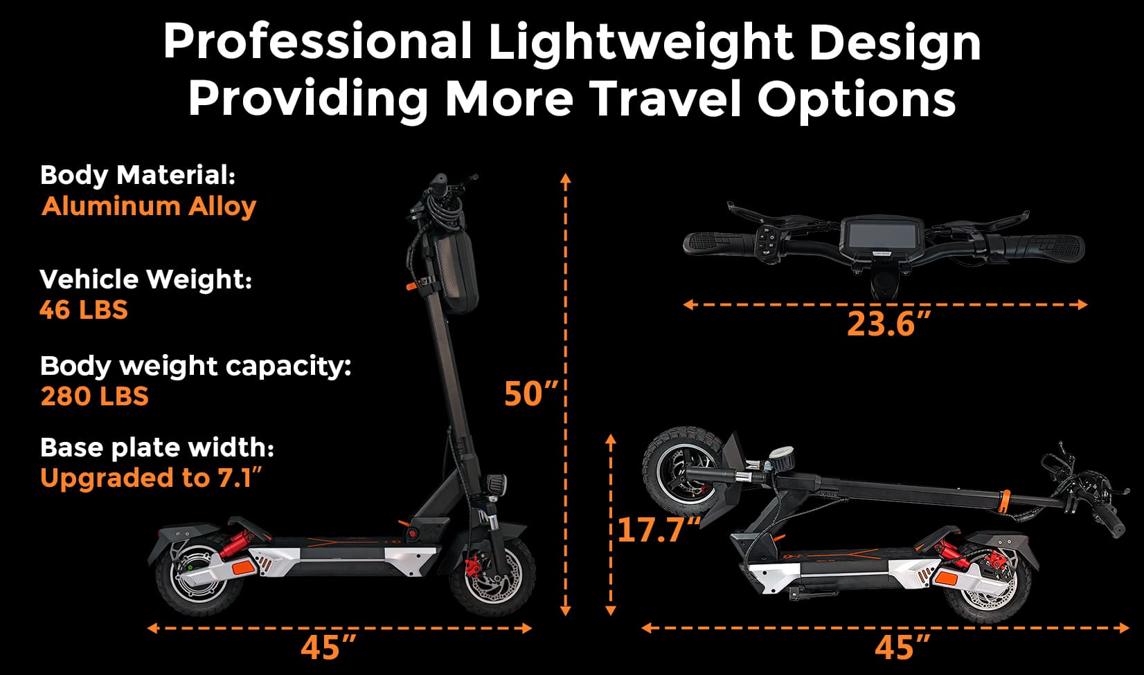 What a great scooter for the price. This has made it possible for my wife to join in outdoor family activities whether walking the dog or setting around an evening fire. I did swap the plastic tires for the pneumatic tires for a slightly softer ride. The light weight makes it easy for one person to transport in our Chevy Blazer. Pull one pin to remove the seat, lower the yoke, and set it in. It's long enough to use the front handle to set the front end in the Blazer, the use the handle on the rear to lift the back end and roll it forward. Probably less than 30 lbs at any one time.