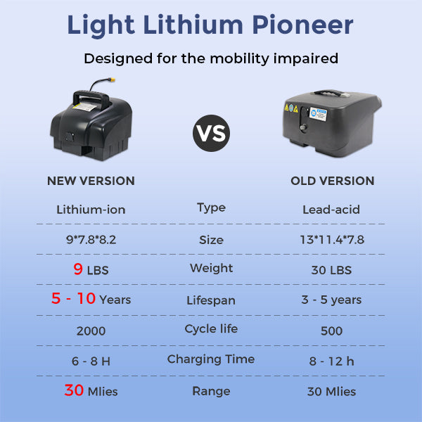 30Ah Lithium-Ion Battery, 30-Mile Range — 30% Longer Than Lead-Acid Alternatives