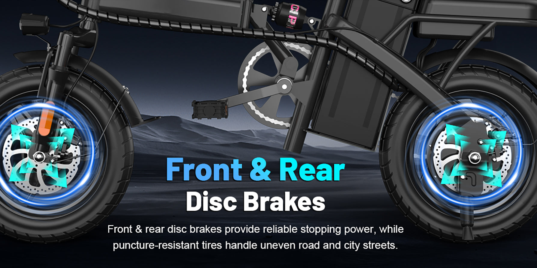Equipped with front and rear disc brakes, the scooter delivers strong and stable stopping power, while puncture-resistant tires handle uneven roads and city streets, ensuring a safe ride.