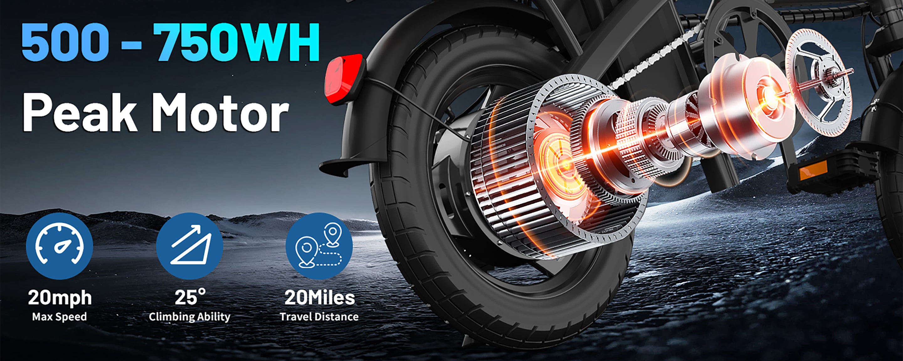 Equipped with a 500–750Wh peak motor, the scooter reaches up to 20 MPH, climbs slopes up to 25°, and offers a travel range of around 20 miles, making city commutes and short adventures effortless.